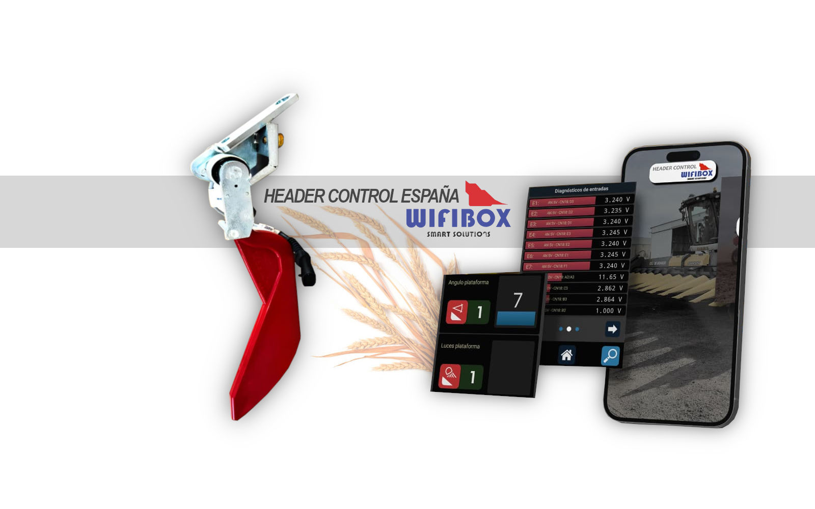 Mantener la altura del cabezal de cereal en todo el terreno es difícil, el control automático de altura e inclinación de WIFIBOX Header control España es preciso y permite centrarse al operador en otros detalles.